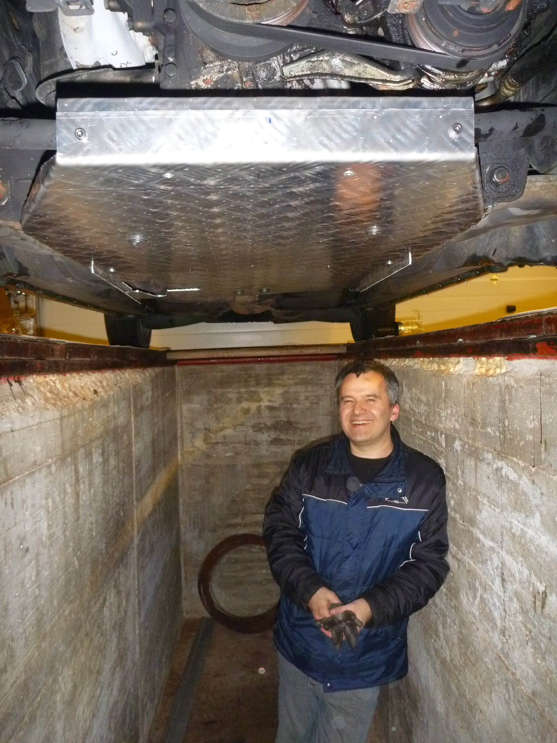 Die Auffahrschutzbleche sitzen. Da kommt uns keiner mehr an die Ölwanne. Das hat der Fritz genial vorbereitet. Somit könnten wir auch noch nach Verlust der beiden Vorderräder weiterfahren - die Gleitschiene vorne unten wird schon ein paar tausend km Geröllstrecke halten, der Heckantrieb schiebt das schon. Es wurden schon Überlegungen angestellt, ob wir diese wunderschönen Riffelbleche nicht doch wieder mit nach Hause nehmen.. wird schon ins Handgepäck passen, oder?