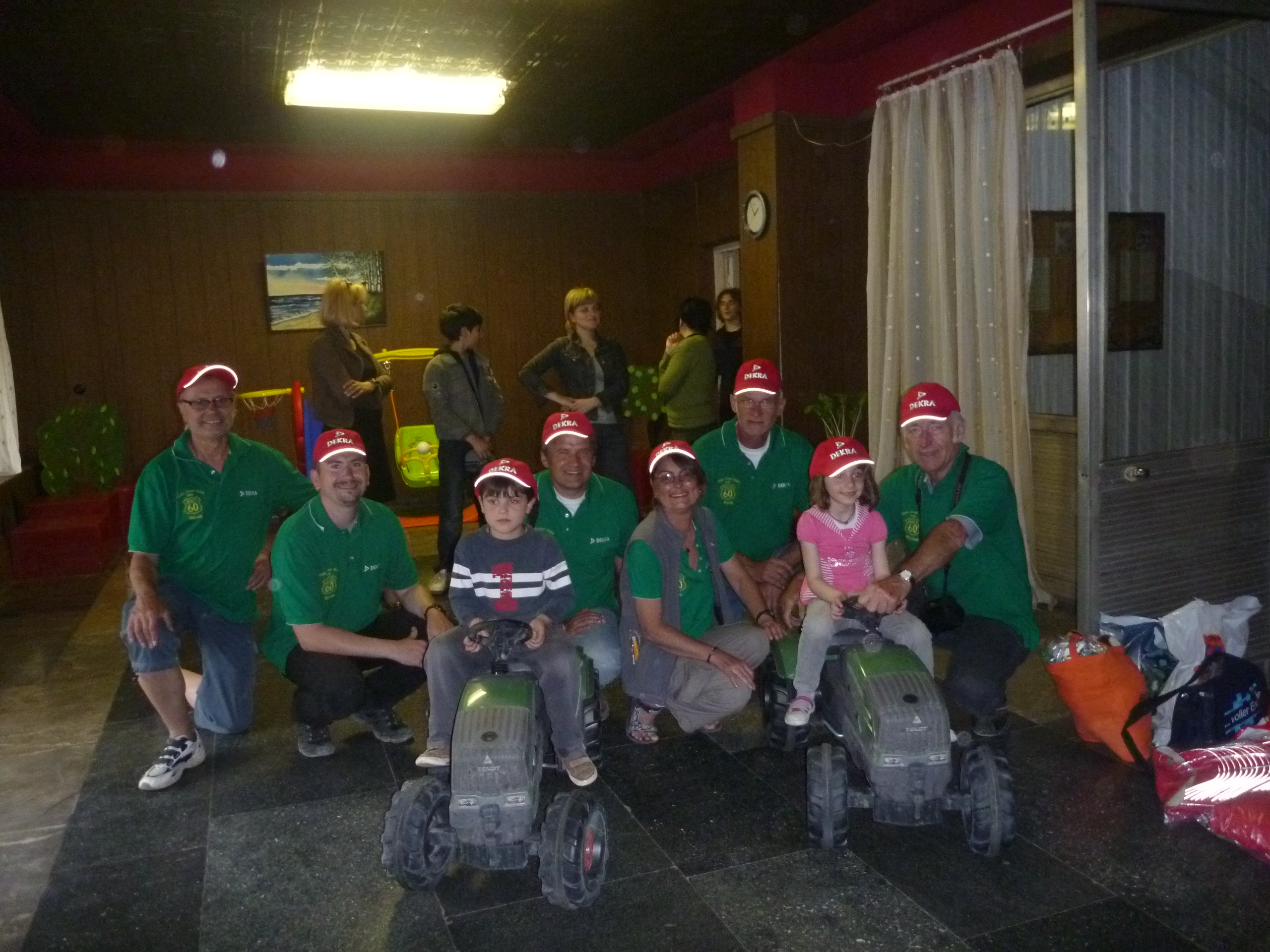 Hier haben wir dann Stifte, Spielzeug, Lebensmittel und vor allem die letzten beiden Traktoren abgegeben. Die Kinder haben gesehen wie wir sie in den Kindergarten gerollt haben und sich dabei fast die Nasen an den Scheiben plattgedrückt. Große Begeisterung!